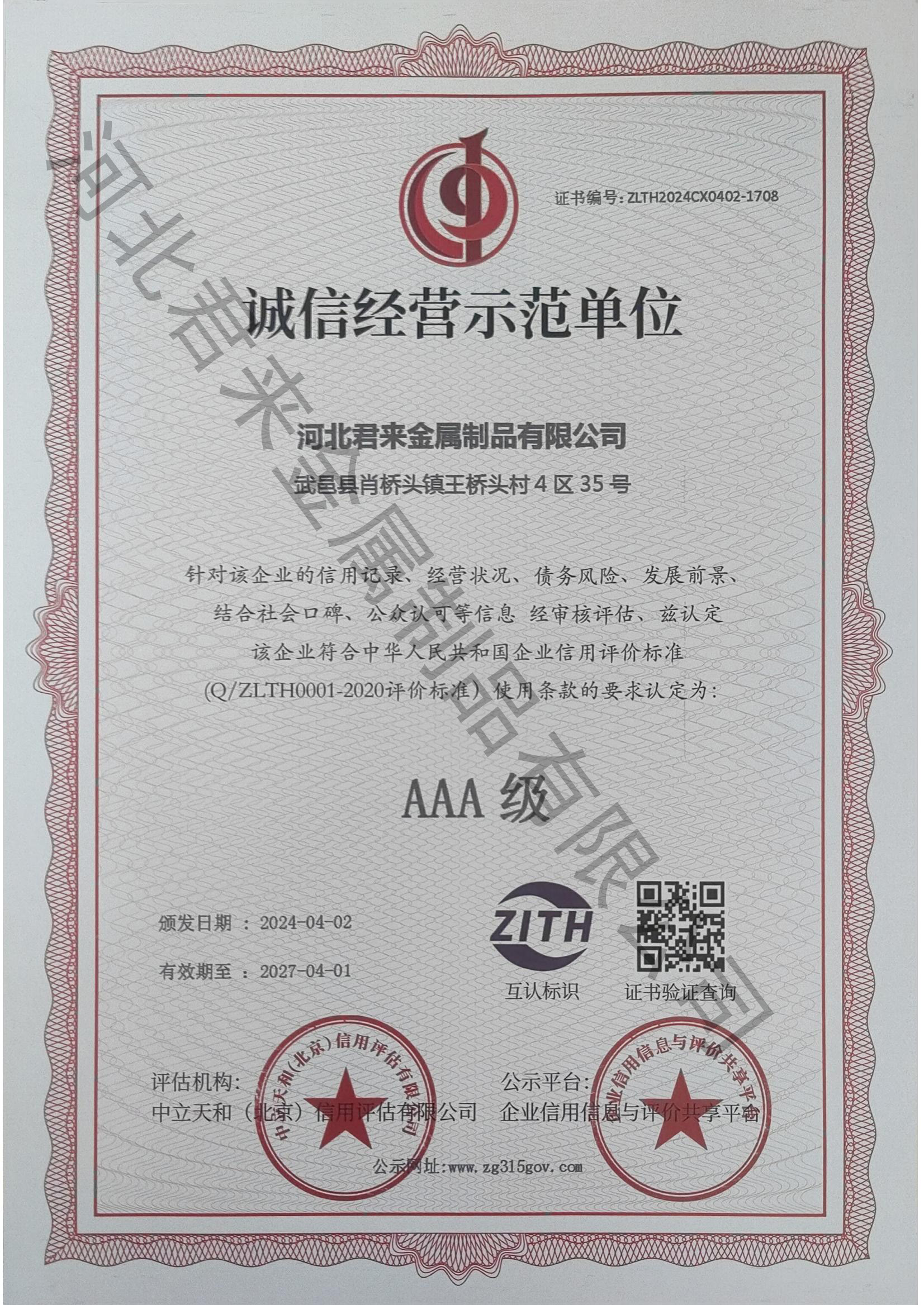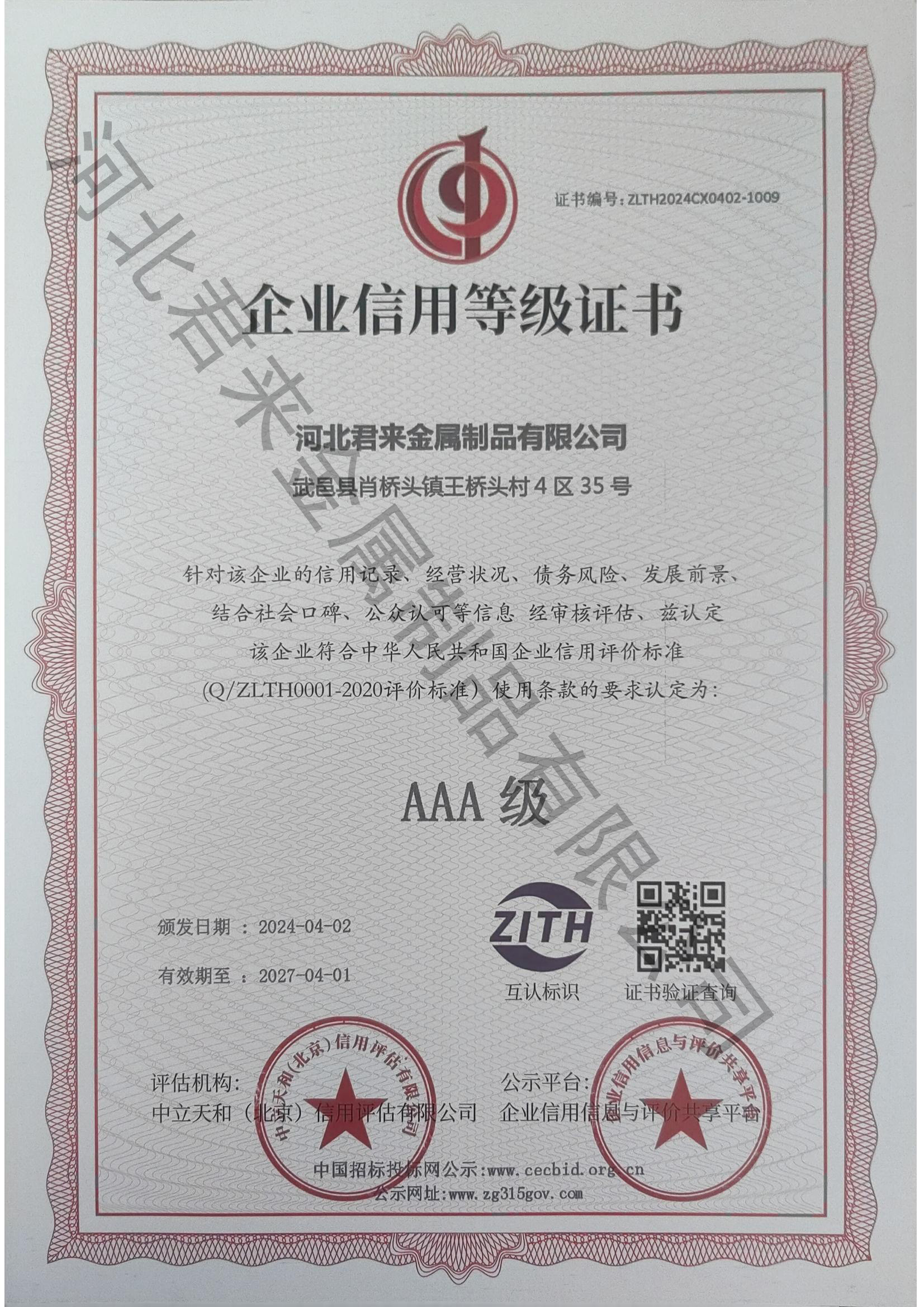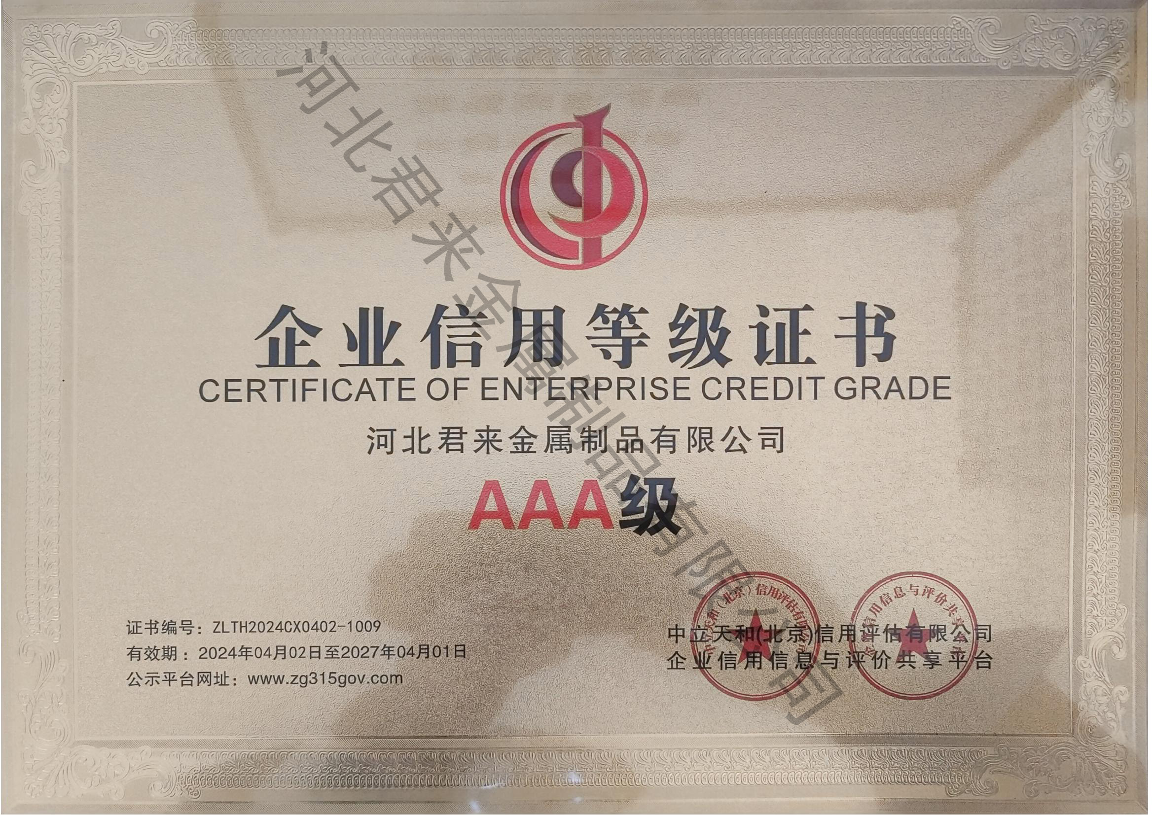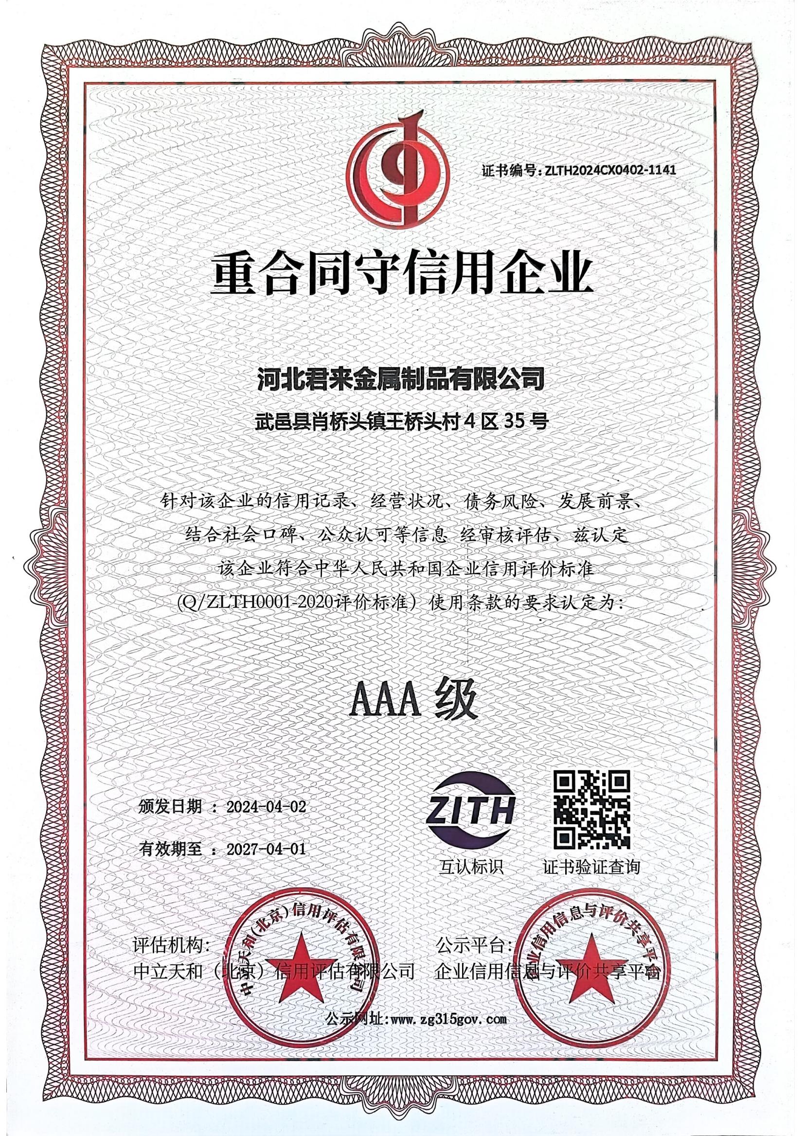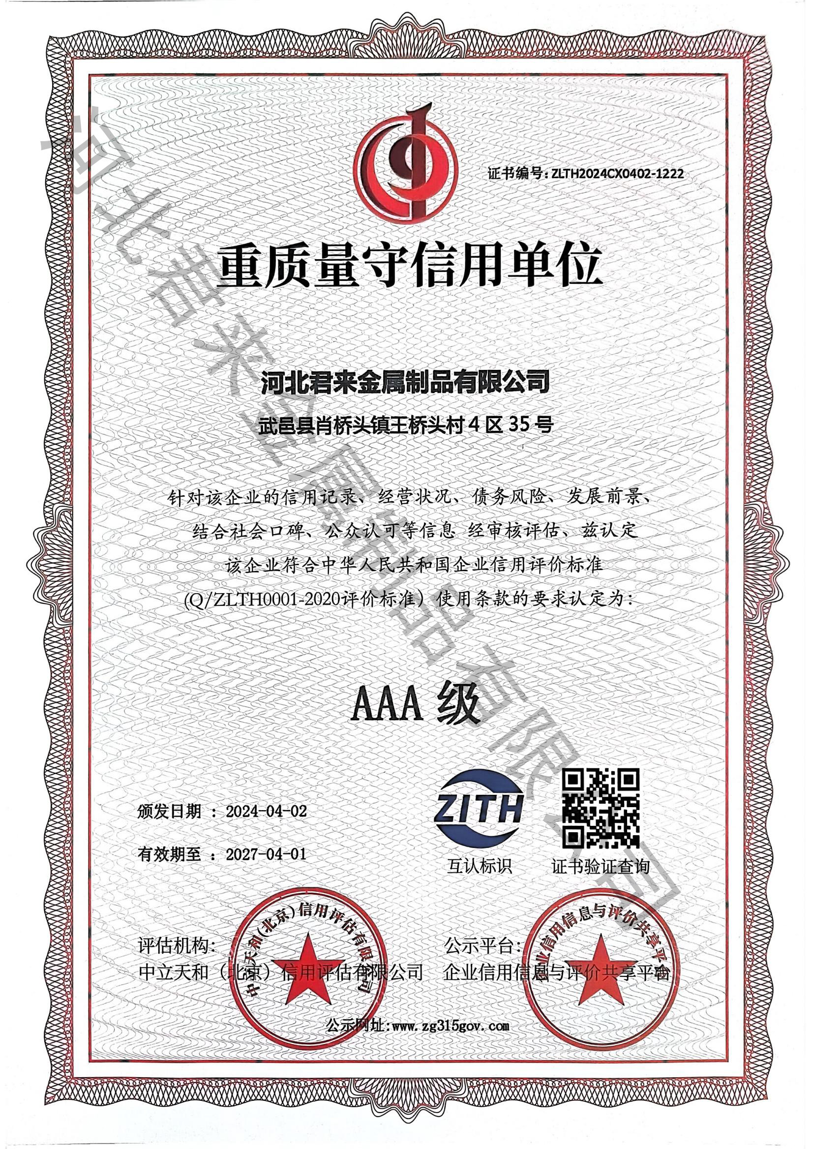 企業(yè)信用等級證書
