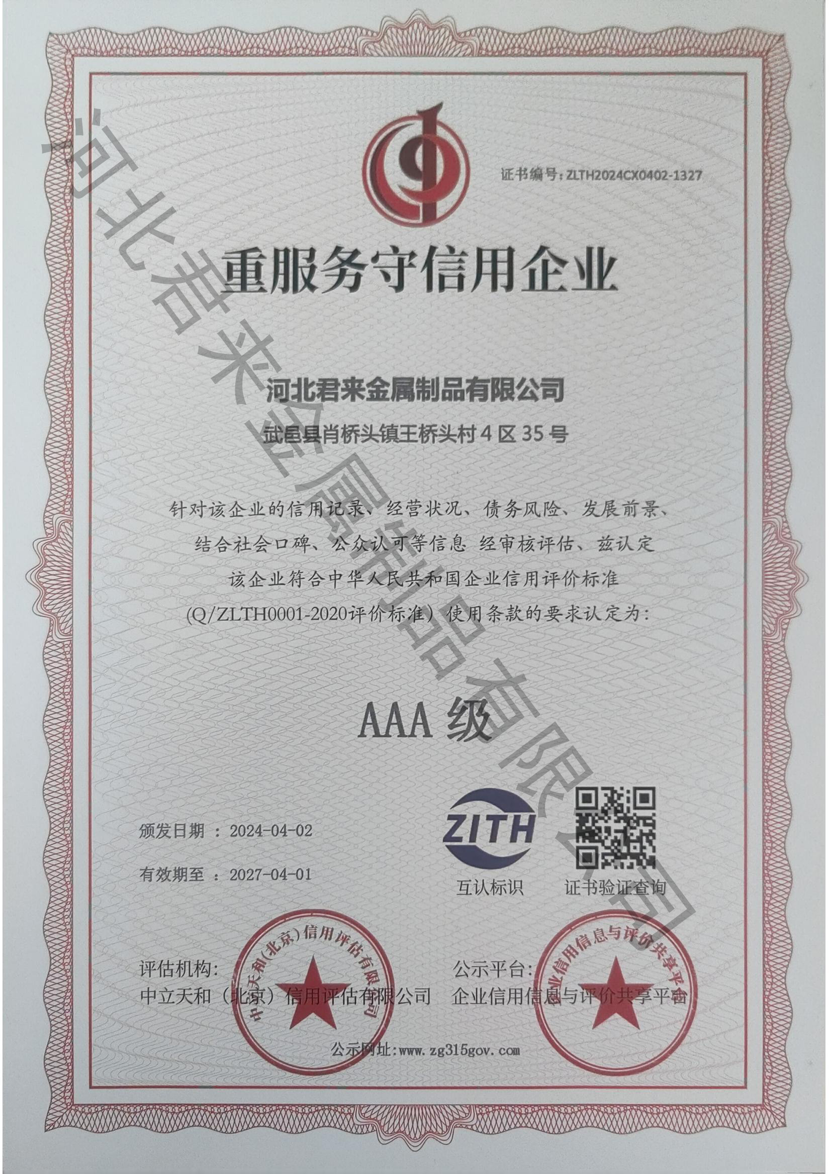 企業(yè)信用評價AAA級信用企業(yè)